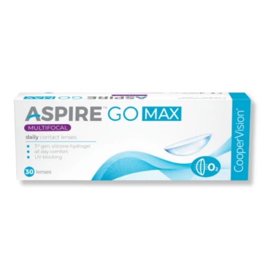 Cooper Vision Aspire Go Max 1 Day Multifocal (30 Lens/Box): Experience the perfect blend of convenience and comfort with the Aspire Go Max 1 Day Multifocal lenses. Designed specifically for those with presbyopia, these daily disposable lenses provide the healthy benefits of silicone hydrogel technology.